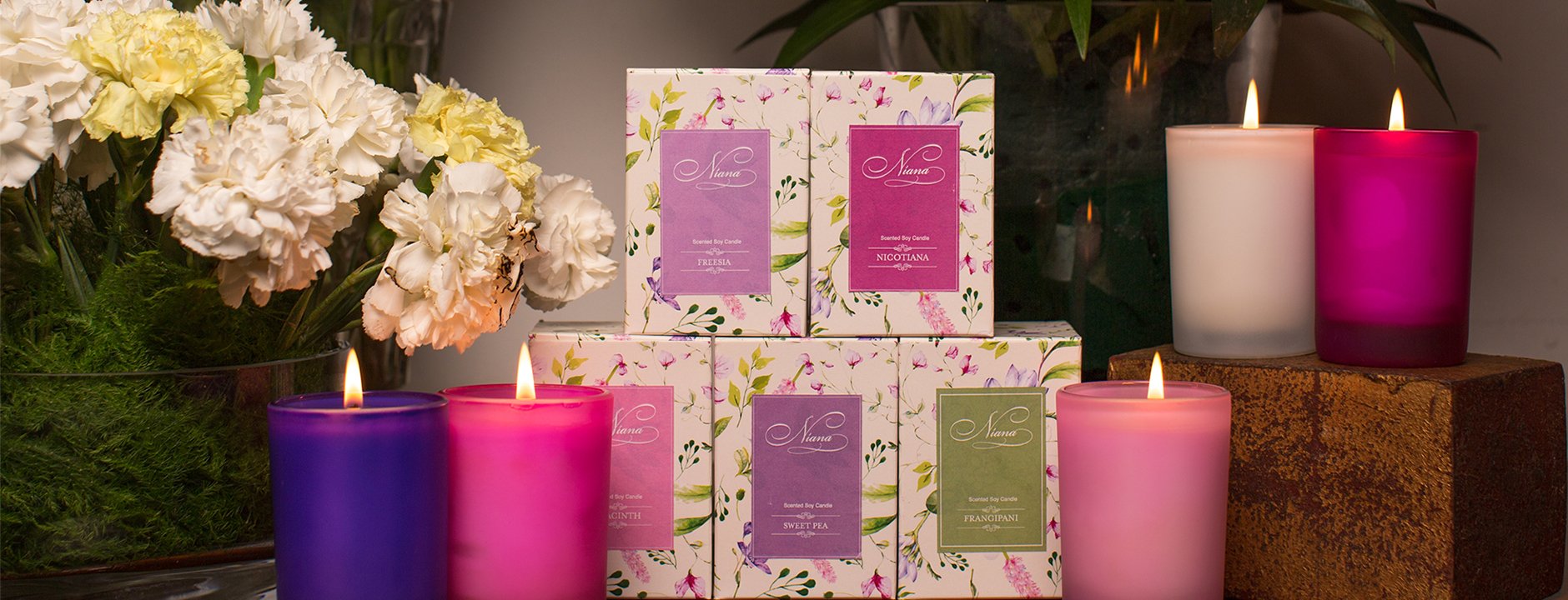 Curated with love. Niana's handcrafted gift sets make beautiful gifts for any occasion. Discover scents from nature's most delightful flowers. Fresh, floral and alluring. Freesia - This light, fresh and juicy aroma with its rich and delicate fragrance will tenderly seduce your senses....