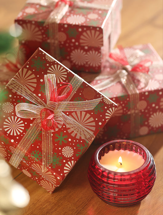 - Contents: 1 scented soy candle in a red ribbed glass